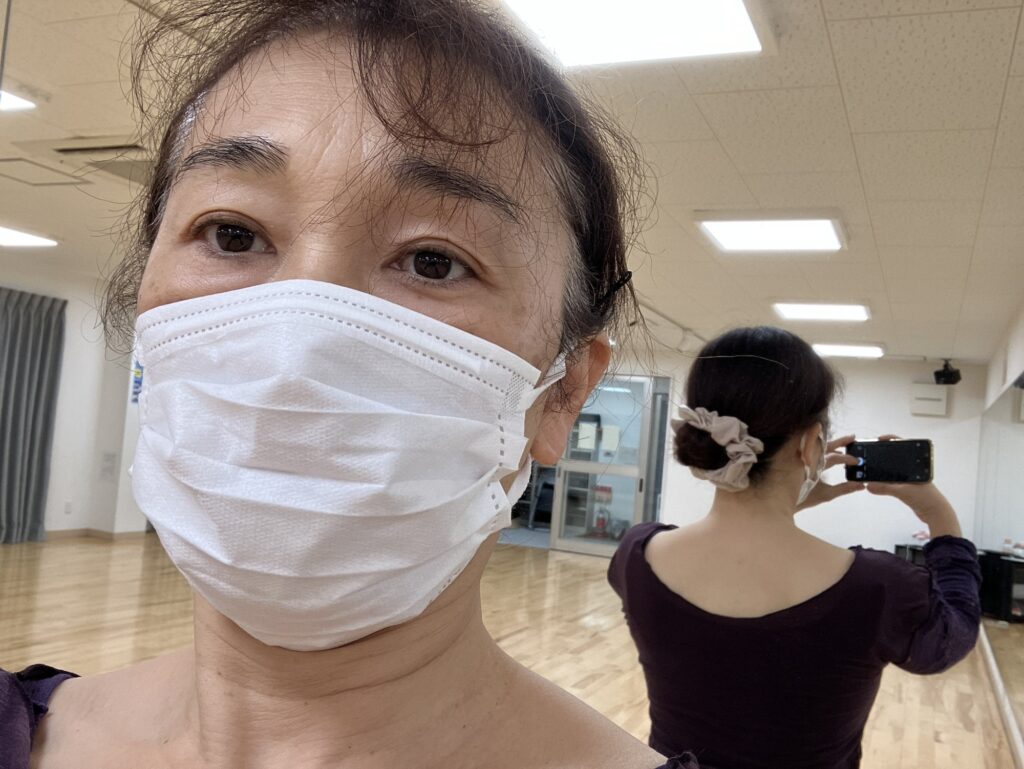 ↓本日の私の装い。お団子にもしてみました。すっきり動きやすかったです。