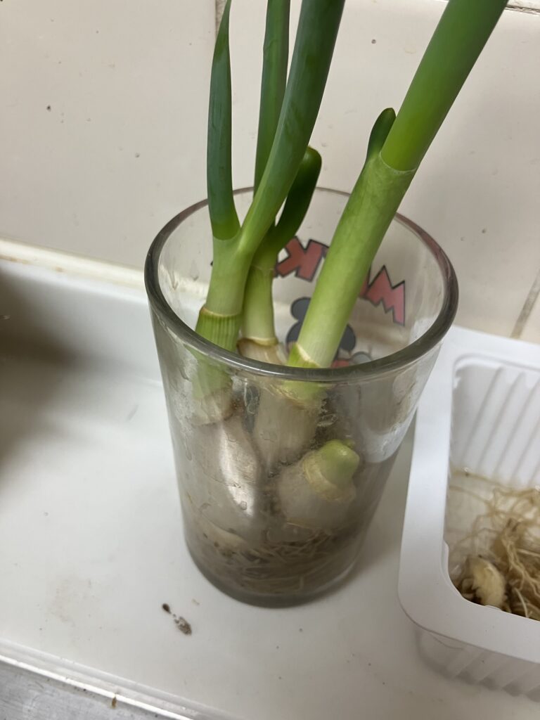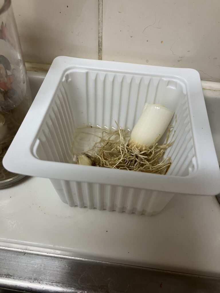 買ってきた根っ子がついたネギ。